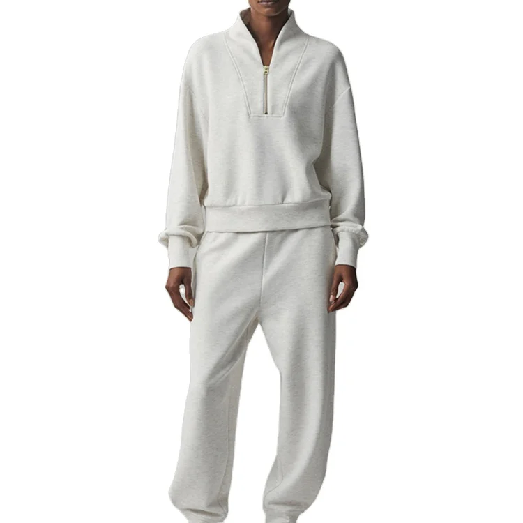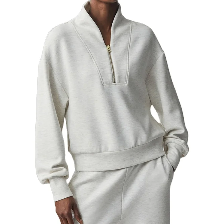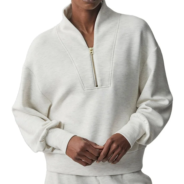LANGHE Custom High Quality Sportswear Cotton Fitness Sports Gym Half Zip Hooded Oversized Waterproof Sweatshirt for Women
